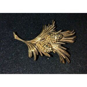 Monet Vintage Gold-Tone Pinecone Brooch Manly Fall Christmas