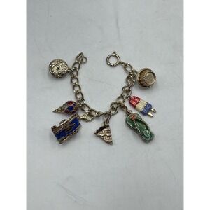 Monet Vintage Signed Gold Tone Summertime Sweets Charms Bracelet