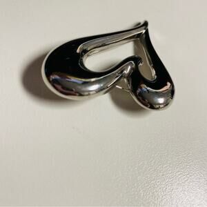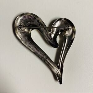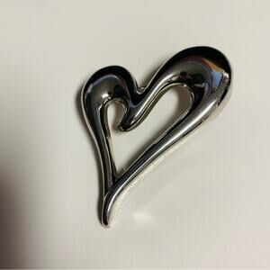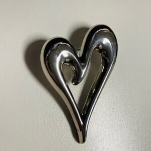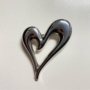 Monet Vintage Signed Silvertone Heart Brooch Pin 2.5” 70s