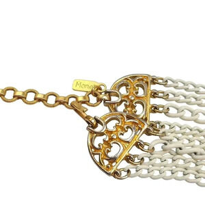 Monet White Enamel Chain Multi Strand Necklace Hook Closure Gold Tone Vintage
