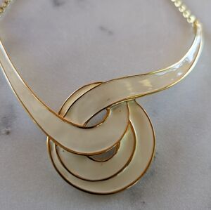 Elegant Vintage Monet Cream Enamel Gold Tone Choker. Monet stamped.
