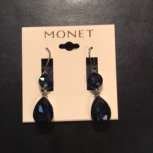 Monet very dark blue gem stone earrings