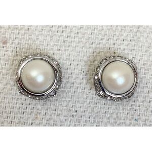 Monet faux Pearl and rhinestone silver tone stud earrings