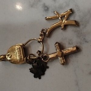 Monet gold tone charms monogram H cross and maple leaves 2 inches long