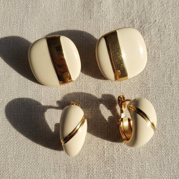 Monet two pairs of Cream Goldtone Clip On Earrings Womens Geometric Vintage