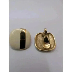Features: Clip-on, Goldtone, Geometric, Cream Enamel