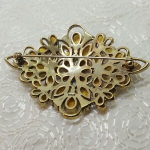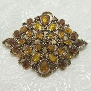 Monet Brooch Pin Crystal Brown Gold Teardrop Round Oval Twisted Gold Brooch Pin