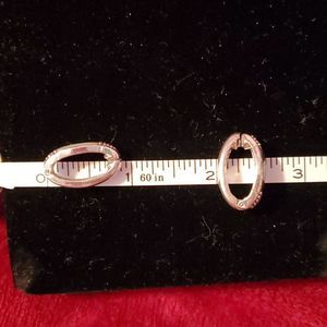 Monet Silvertone Shell Mother of Pearl Agates Clip-On Magnetic Hoop Earrings