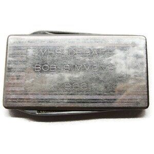 This Unbranded Money Clip features a unique "MHS Debate Bob Simmons 1966" monogram. It is a mini wallet style, made from durable stainless steel and includes a knife and file. Its silver color adds a classic touch.