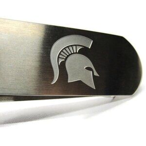 This sleek silver money clip by C-Note features the MSU Michigan State University Spartans emblem. Perfect for carrying cards and cash, it's a must-have for any Spartans fan.