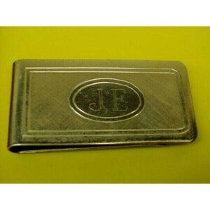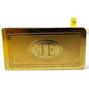 This unbranded, gold-plated money clip is monogrammed with the initials "JE". Ideal for holding credit cards, cash, and IDs in style.