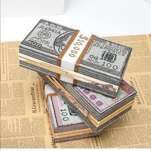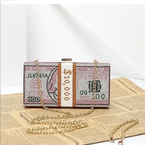 Money Rhinestone Clutch-Bag