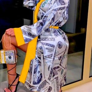 Silky Money print Robe With $100 bill print and Gold trim .