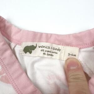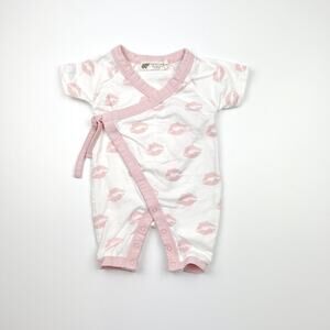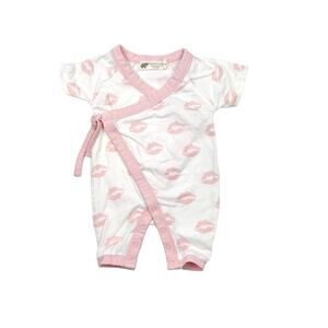 Monica + Andy organic cotton blend short sleeved romper with kisses print. Size 3/6m, VGUC.