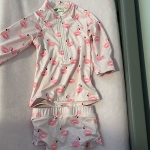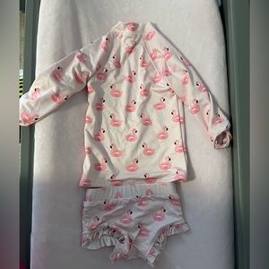 Adorable Monica + Andy flamingo pink rash guard and bottoms. Please note I also have another listing for a matching 2T one piece!