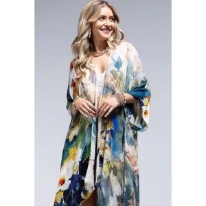 Monica Floral Watercolor Spring Summer Open Wrap Women's Casual One Size Kimono