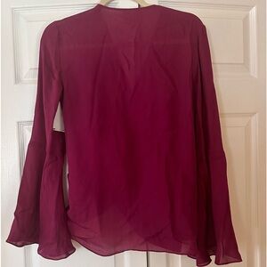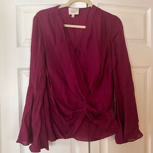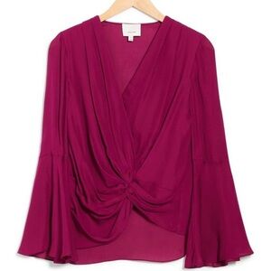 Drapey folds emanate from the center of an ethereal silk blouse flanked by bell sleeves for extra-floaty romance.