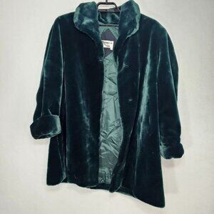 Monica Gray Vintage Green Faux Fur Coat Mid Length Jacket Extra Large