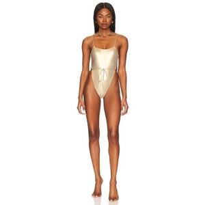 Monica Hansen Beachwear Galaxy One Piece Swimsuit in Metallic Silver Size Small