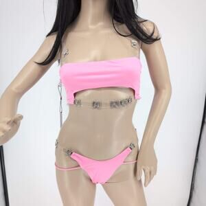 Monica Hansen Revolve Beachwear Shine Like A Diamond Bikini Top and Bottom Sold Out Rhinestone Embellished Strappy Set in Pink Panther Color - Women's Size M - NWT