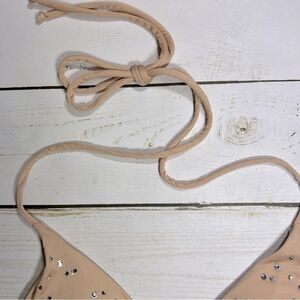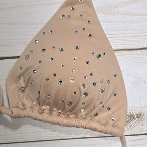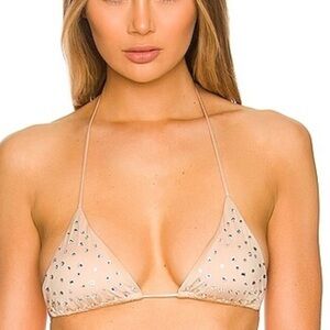 NWT Monica Hansen Halter Neck Triangle Criss Cross Bikini Top Crystals In Nude.