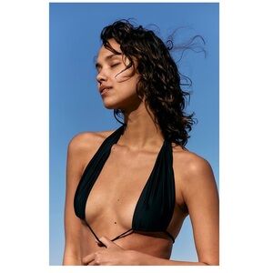 Unpadded. Halter neck and back tie closure. Can be worn two ways as shown in photo. Made in Italy.