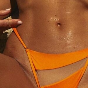 NWT Monica Hansen Money Maker Strappy Mesh Panel Bikini Bottom Pink Panther. Size Medium.