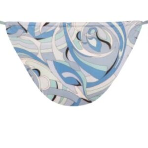 One side string bikini bottoms featured in a vintage chic marbled print with a shimmery finish. Skimpy silhouette with adjustable side ties. Made in Italy.