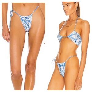 NWT Monica Hansen x REVOLVE Vintage Chic String Bikini Bottom In Blue Abstract. Size Small.