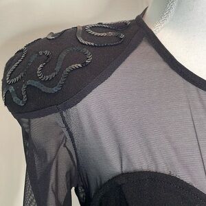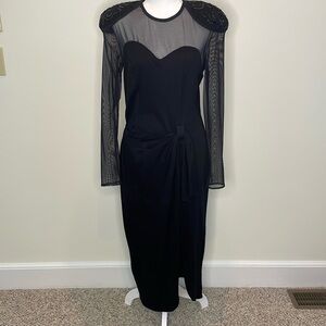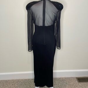 Monica Heart Dressy Black Long Dress With Sheer Panels & Sequins. Size 12