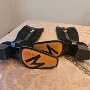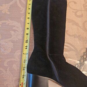 Beautiful made in Italy black suede with gold hardware riding boots, European size 36.5, maybe worn once. In perfect condition. Very soft leather. Please review all images carefully since all sales are final.
