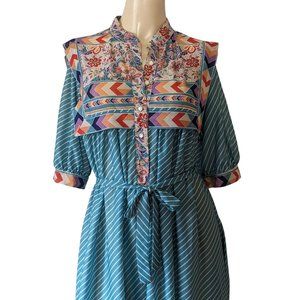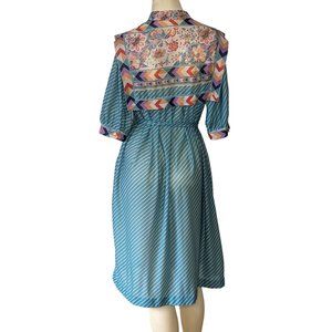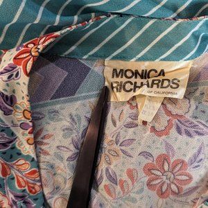 Monica Richards Vintage short sleeve Bohemian Floral Sheer polyester dress 16