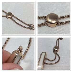 This Art Deco–inspired bracelet with an adjustable rose gold chain features a striking geometric stone that can be engraved for a personalized gift.