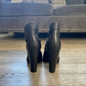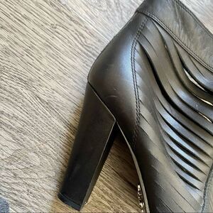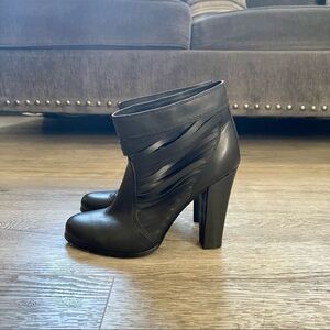 Monika Chiang Leather Cut Out Round Toe Booties in Black Size 7