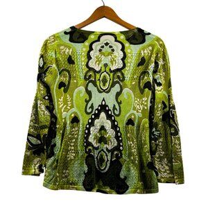 Monique Button Boho Glam Dopamine Dressing Cardigan Green Psychedelic Print Sz L