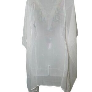 Monique Leshman White Embroidered 100% Silk Sheer Blouse Tunic Top Size Small