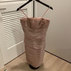 Monique Lhuiller Pale Pink Pleated Strapless Dress Piping Cocktail Evening 6