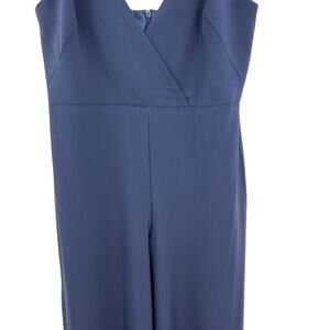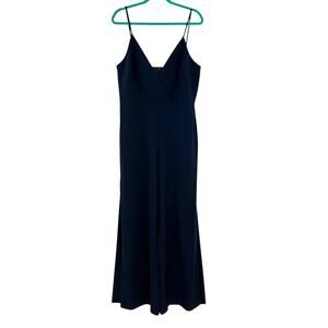 Monique Lhuillier Bridesmaids Doutzen Jumpsuit Wide Slit Leg Navy Blue Size 12