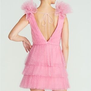 Monique Lhuillier Bubblegum Tulle Dress Sz 8 Tiered Ruffle Party Mini Dress