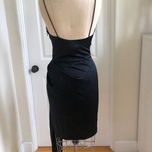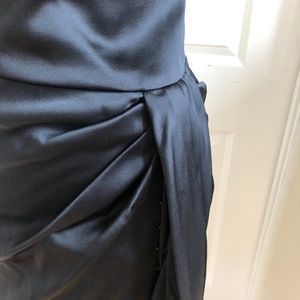 This dress is incredible!! Very flattering draped neckline. Dramatic drape off of bodice, It is made of 74% acetate and 26% viscose, so has an incredible hand. It is a satin feel with a soft sheen. NWT, perfect condition, ready for a night on the town!!!