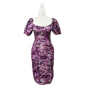 Elegance meets modern femininity in this Monique Lhuillier off-the-shoulder midi dress. Designed in the vibrant “Painted Blur” print, it features soft puff sleeves, a flattering fitted silhouette, and a subtle back vent for ease of movement. The luxurious metallic-infused fabric catches the light beautifully, making it ideal for cocktail events, weddings, or any special occasion.