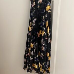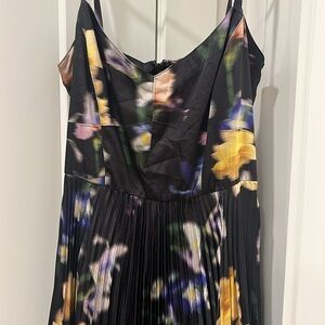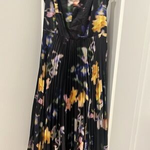 Monique Lhuillier Ella Floral Pleated Satin Midi Dress