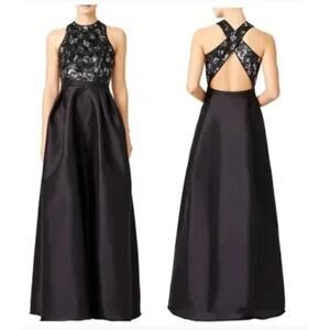 Monique Lhuillier Jadore Dress Sequin Open Criss Cross Back Maxi Gown 2