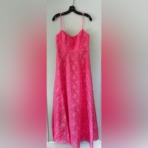 Monique Lhuillier Linda Pink Lace Maxi Dress Gown Size 8 NWT Evening Formal