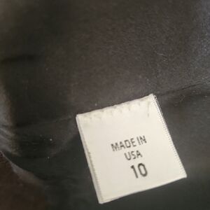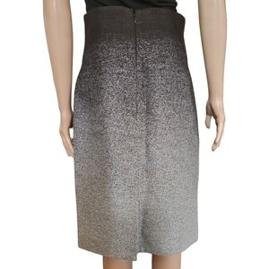 This is a lovely skirt with a luxurious wool/silk blend fabric and a 100% silk charmeuse lining. It has a grey to chocolate brown ombre pattern. There is no damage, the skirt is in excellent condition.