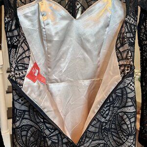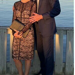 tags: monique lhuillier cocktail dress, overtones dress, black lace sheath dress, modern lace, little black dress, lbd, art deco dress, evening event dress, formal designer dress, semi-formal wedding guest dress, wedding guest dress, women’s size 4 little black dress, luxury lace dress, event dress, holiday party, birthday party, night out, date night, fancy dress, semi formal dress, delicate, intricate black lace, art deco inspired detailing, elevated evening style, cocktail party, dinner party, wedding, upscale events, tailored silhouette, modern vintage aesthetic, architectural, feminine, sexy, romantic, luxury event dressing, high end designer dress, cruise formal, vacation, packable, wrinkle resistant, resort formal, black tie optional, gala, fundraiser dress, homecoming, prom, special occasion dress, anniversary dress, slow fashion, circular fashion, sustainable wardrobe, conscious closet