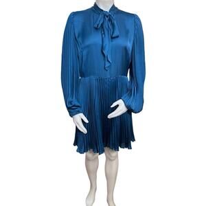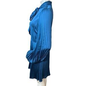 Monique Lhuillier Pleated Dress With Necktie Ceramic Blue Size 10