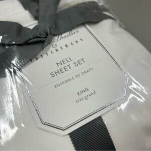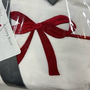 Monique Lhuillier Potterybarn Nell Embroidered Bow Sheet Set King White Red NEW