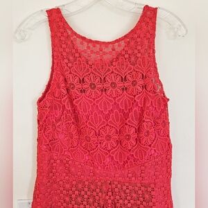 Monique Lhuillier Red Lace Sleeveless A Line Dress