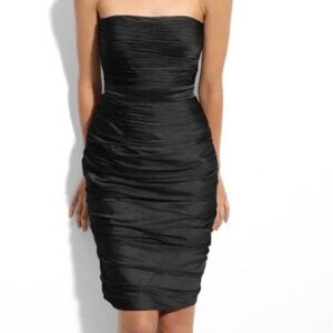 Monique Lhuillier Ruched Chiffon Strapless Formal Dress Black